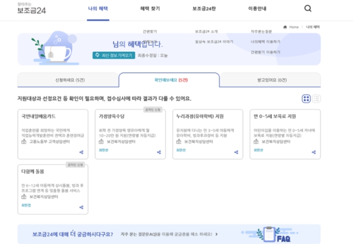 본인의 보조금24 혜택을 볼 수 있습니다.